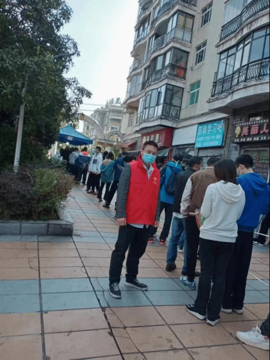 民盟盟员曾德清参与小区的核酸检测秩序维持工作
