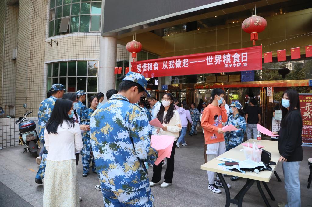 我校在一食堂门口开展2022年世界粮食日和全国粮食安全宣传周活动。校党委委员、副校长刘卫林莅临活动现场指导。宣传周活动由后勤处主办。
