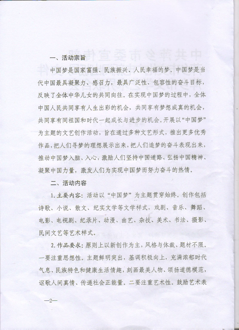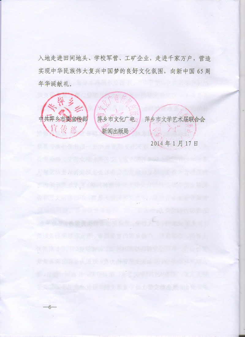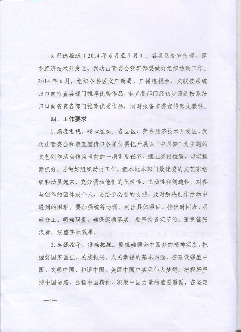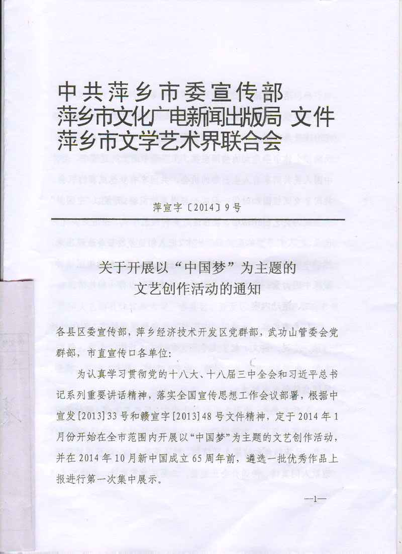 《关于开展以“中国梦”为主题的文艺创作活动的通知》(萍宣字[2014]9号)