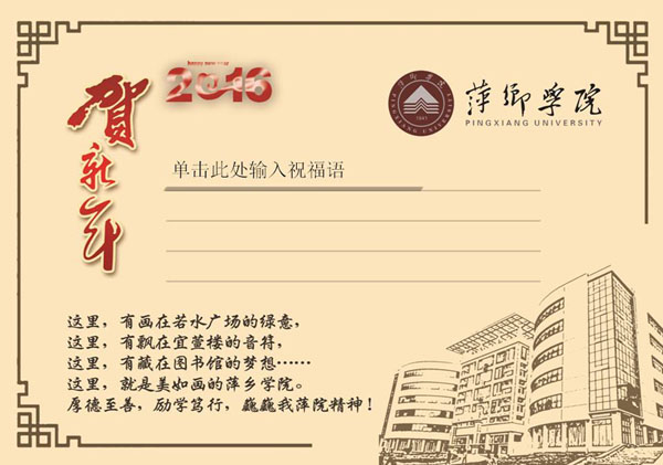 党委宣传部和校团委联合设计了一张学院的新年贺年卡,欢迎老师、同学和校友们下载使用。下载后请自行加上需要添加的文字内容。