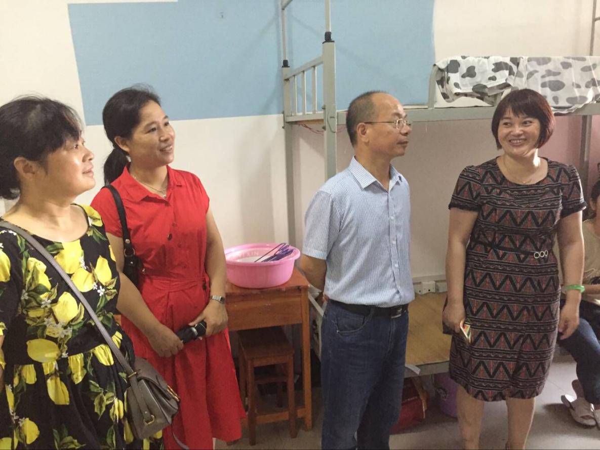 2018年9月8日下午3:00,学前教育学院党总支书记胡艳维、院长邱仁根、副院长彭香萍、党总支副书记阳学文来到学生宿舍三栋看望新生。