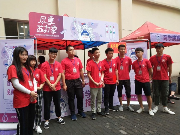 为了给不远万里赶来的学生和学生家长送上一丝丝清凉,商学院迎新工作得到了企业的免费赞助,在商学院新生接待处免费为新生及家长提供解渴饮品,受到了大家的一致好评。
