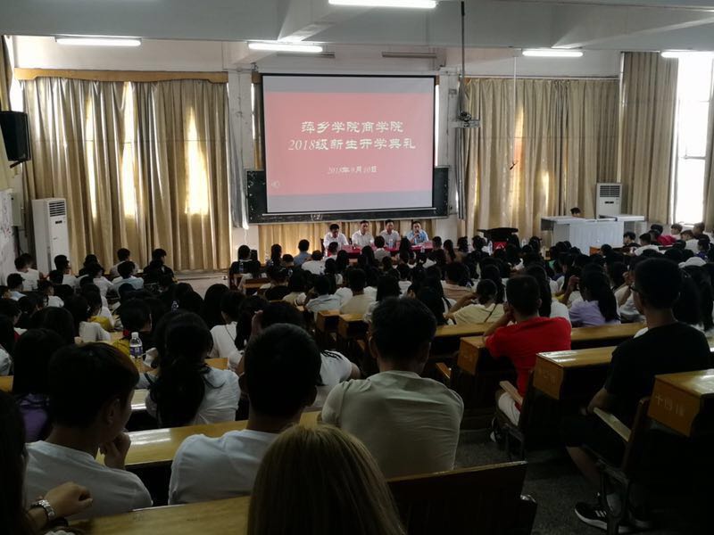 2018年9月10日上午9:00,萍乡学院商学院2018级新生开学典礼在跬步楼1101举行。商学院院长文正再,党总支书记韩芳文、副院长李自连、党总支副书记尹金、教师代表及全体2018级新生参加了典礼。本次大会由李自连副院长主持。