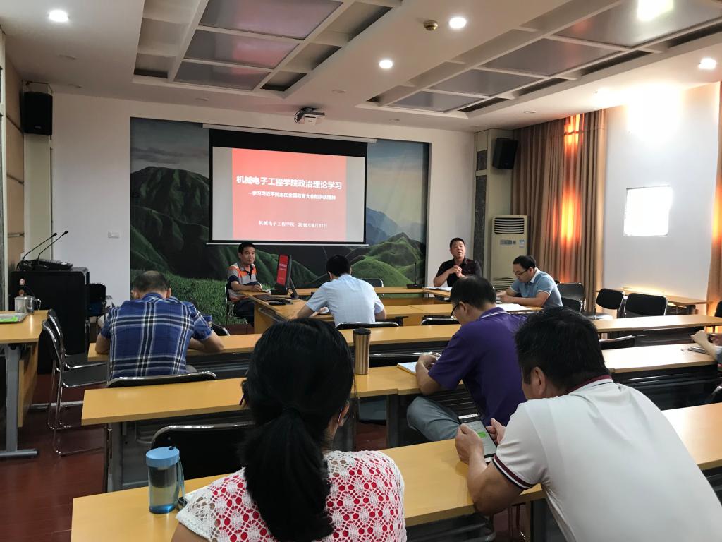 2018年9月12日,机械电子工程学院全体教职工通过电视网络媒体认真学习习近平总书记在全国教育大会的重要讲话精神。王斌书记主持会议,认真向全体教职工传达并共同学习。