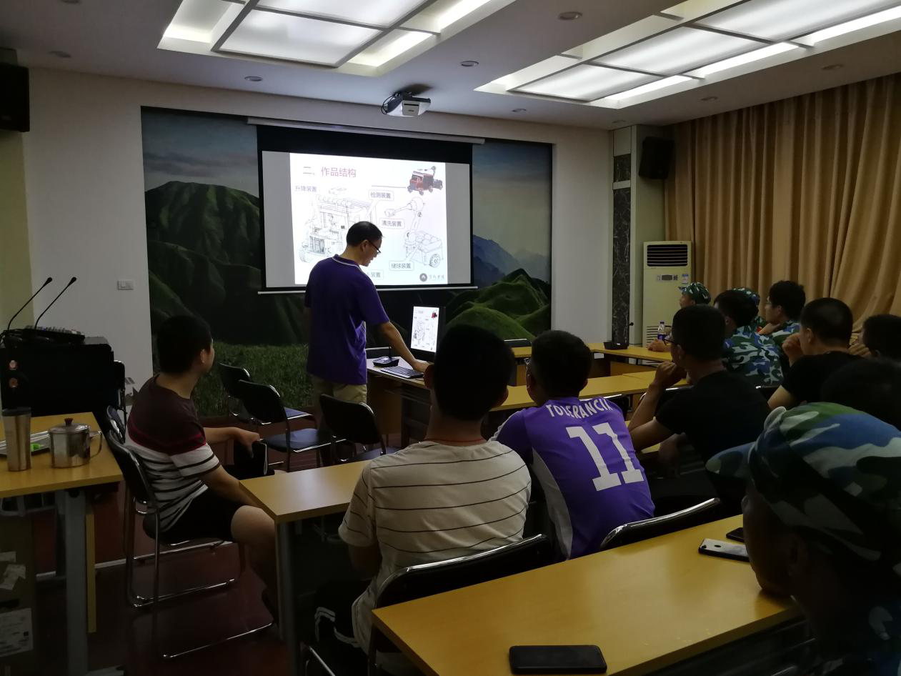张红钢博士围绕机械电子工程学院的专业介绍与同学们详细的解说,为2018级新生们介绍了机电学院2018年全国大学生机械产品数字化设计大赛获奖作品"赛尔号"的创造背景及相关理论知识,同时介绍了机电学院在2018年江西省大学生机械创新设计大赛中荣获佳绩的相关作品。