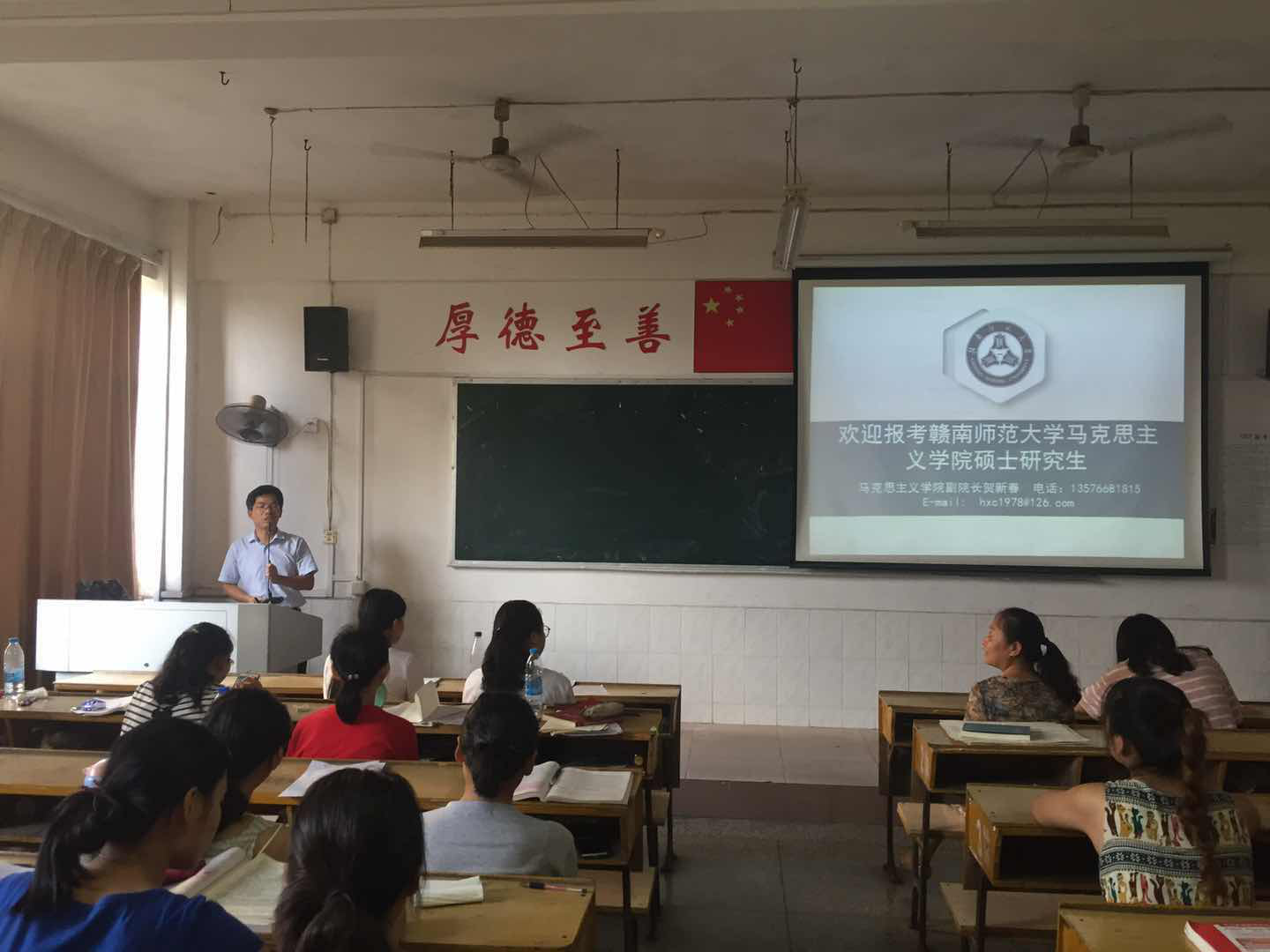 9月12日下午,政法学院在跬步楼1105开展了考研交流座谈会。本次座谈由赣南师范大学马克思主义学院贺新春副院长主讲,政法学院院长朱红英主持,同学们积极参与。贺新春副院长为同学们介绍了赣南师范大学的基本情况,强调了考研的重要性。贺新春副院长为同学们介绍了赣南师范大学的马克思主义、法学等硕士专业,让同学们对赣南师大的专业情况及教学环境有了进一步了解。此外,贺新春副院长介绍了读研期间国家和学校对优秀同学的培养资助政策,鼓励同学们努力学习,大胆考研,不必有后顾之忧。此次考研座谈会的开展加深了我院同学对考研、读研的认知,为同学规划未来发展道路提供了指导。
