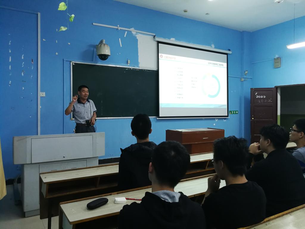 2018年9月28日晚,江西财经大学软件与物联网工程学院孙建成教授、汪靖博士为学生主讲,介绍了江西财大软件与物联网学院的基本概况、近期研究项目及优惠政策,分析了各个专业方向以及就业领域,给同学们指明了今后的努力方向。
