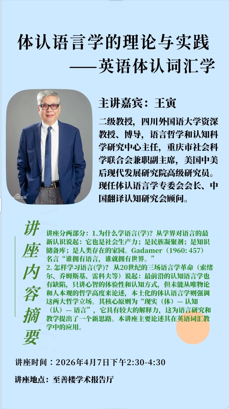 讲座时间:2026年4月7日下午2:30-4:30