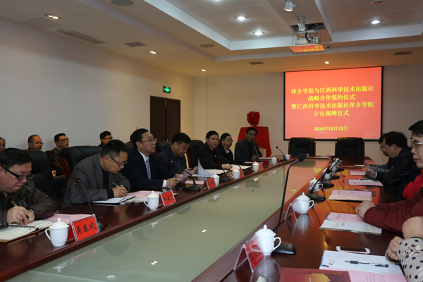 12月13日上午,江西科学技术出版社与我校战略合作签约仪式暨江西科学技术出版社萍乡学院分社揭牌仪式在我校至善楼第一会议室隆重举行。