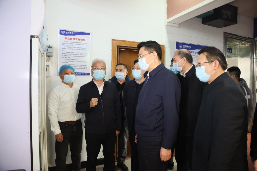 刘烁一行走进学校食堂,实地察看了食堂的消毒设备、食品留样柜、员工操作间,详细了解了食堂工作规章制度、员工的健康情况等,认真听取了学校负责人关于食品安全工作的介绍,并就食堂安全管理体系、常态化防控、应急处置、宣传培训等方面的情况与食堂负责人进行了交谈。