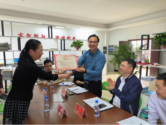 近日,萍乡市科协领导来到我校创新创业学院,为2022年度萍乡市“最美科技工作者”获得者宋杰光博士颁发荣誉证书。副校长吴代赦,市科协主席陈威红,市科协副主席彭辉出席本次颁奖活动。校科研处处长罗小燕,创新创业学院副院长宋杰光,市科协学会部部长熊瀚及校创新创业学院教职工参加。