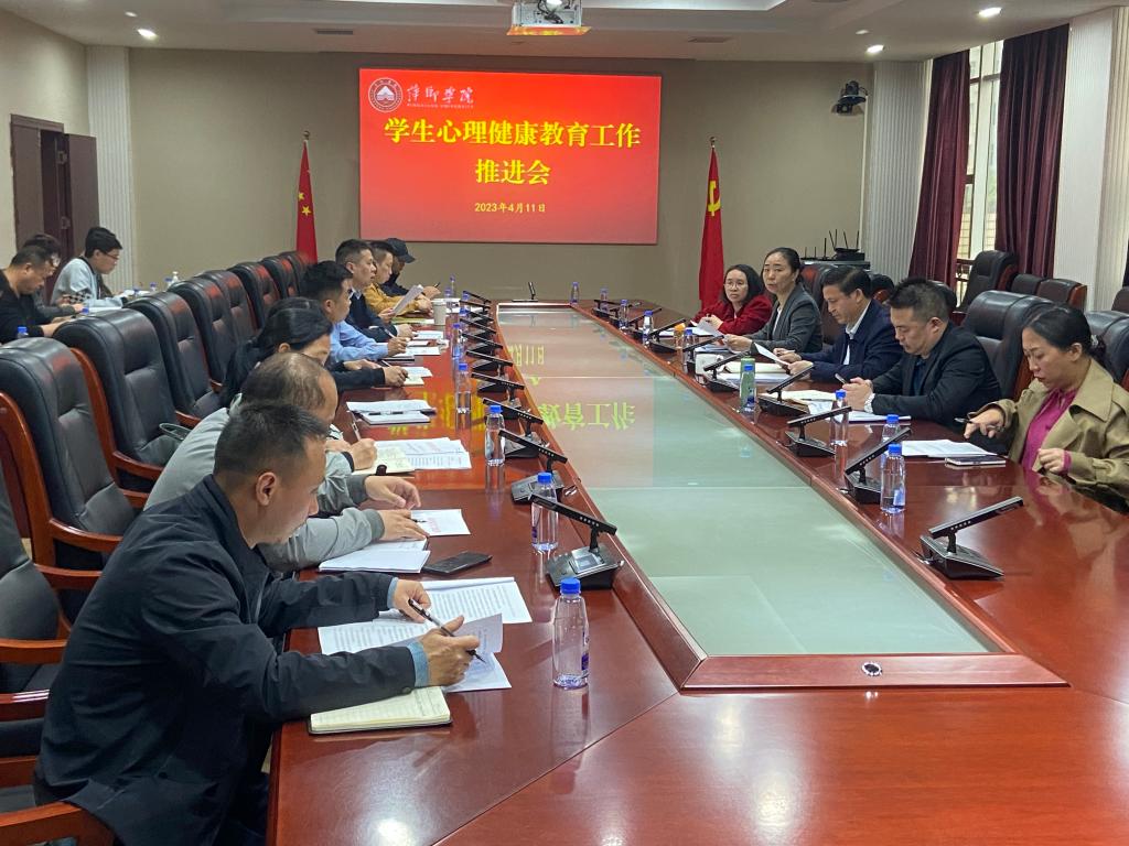 4月11日下午,我校在至善楼第一会议室召开学生心理健康教育工作推进会。校党委委员、副校长、宣传部部长陈永国出席会议。各二级学院党委副书记、学工科长以及学工处、心理咨询室有关人员参加会议。会议由学工处处长江惺俊主持。