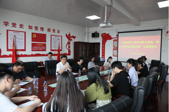 5月15日下午,校党委书记邱晓辉深入二级学院开展“加强领导干部政治能力建设,推动学校高质量发展”主题调研座谈会。校党委委员、组织部部长陈永秀陪同调研,相关二级学院领导班子成员、教工党支部书记和学生党员代表参加会议。座谈会由邱晓辉主持。