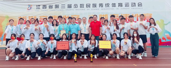 5月18日-20日,江西省第三届少数民族传统体育运动会在鹰潭市贵溪市举行。我校作为萍乡市少数民族传统体育训练基地,在萍乡市委统战部和学校党委高度重视下,将铸牢中华民族共同体意识融入体育教育教学,积极组队训练,代表萍乡市参加江西省第三届少数民族传统体育运动会蹴球、板鞋竞速、高脚竞速、民族健身操4个大项21个小项的比赛,为我市夺得7枚金牌、22枚银牌和47枚铜牌,荣获3个一等奖、6个二等奖和9个三等奖的优异成绩。刘向东、郭燕、刘芳三位老师被评为“优秀教练员”荣誉称号。市委统战部副部长、市民宗局局长袁新忠,校党委委员、统战部部长王林清以及体育学院负责人前往赛场亲切慰问我校参赛师生。