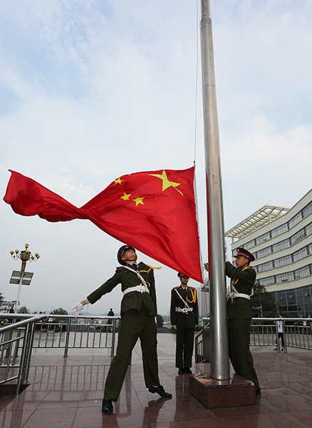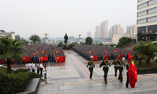 9月9日早上,校团委在毛泽东铜像广场举行了庄严的新生入学升旗仪式。副院长郭伟出席仪式,校团委师生干部、各二级学院团总支负责人以及2016级大一新生近4000人参加了升旗仪式。