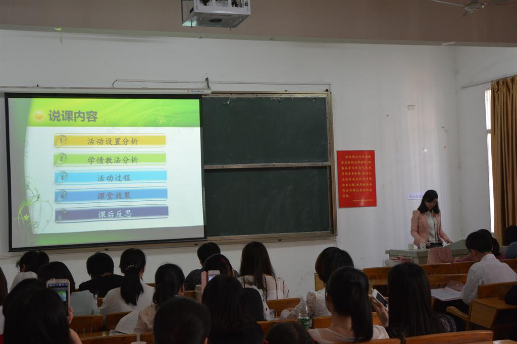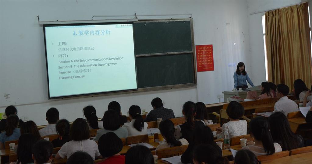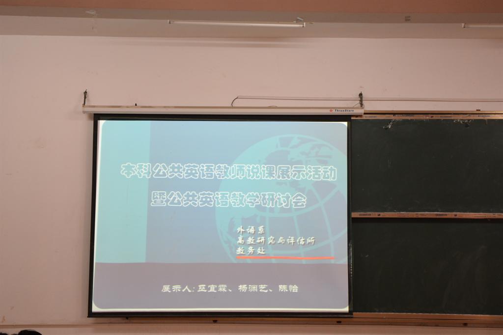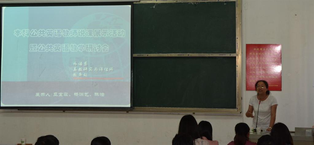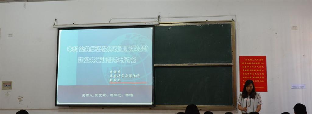 在第一部分,巫宜霖、杨渊艺、陈怡三位公共英语本科老师的说课以“提高学院本科公共英语质量”为主题,分别选择单元教学、小组活动课、单一课程进行了说课,以娴熟的姿态、优美的语言、精美的课件进行了展示。