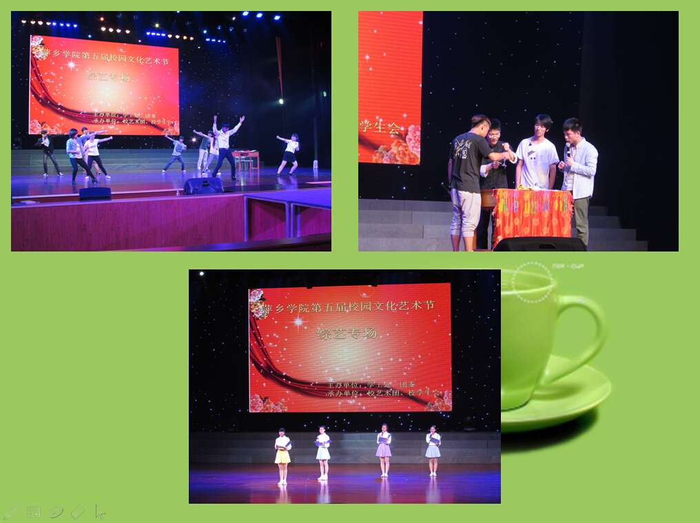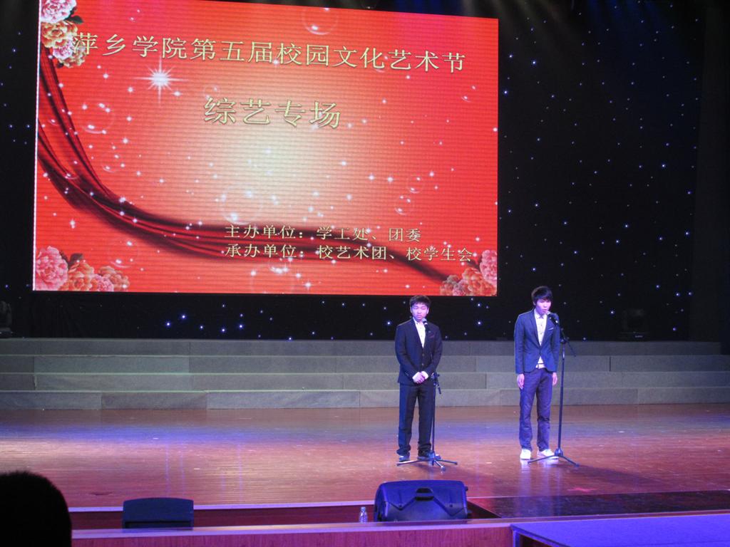 5月21日晚7:30,由萍乡学院学工处和校团委主办,校艺术团和校学生会承办的萍乡学院第五届校园文化艺术节综艺专场在音乐厅隆重举行。担任此次比赛评委的有学工处处长叶国许、校团委副书记谢伟平及聂双老师。全场座无虚席,观众热情高涨。