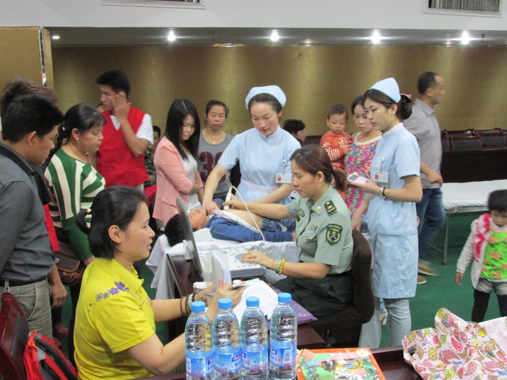 此次义诊的主治医生是来自广州军区总医院的专家,活动一开始,家长们在志愿者的带领下有序进行着。进门时一脸愁容的家长在专家耐心的讲述下一颗悬挂着的心似乎找到了依靠,渐渐舒展了眉头。在场的志愿者也热情的为各位家长服务,耐心的讲解资助活动的相关细节。在场的工作人员秉着“为人民服务”的宗旨给群众带去了温暖与健康。