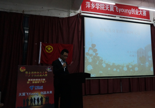 为培养和发现优秀互联网创业创意人才,提升大学生创新创业能力,帮助大学生实现创业梦想,4月20日晚,由校团委、萍乡电信主办,校社团联合会承办的天翼飞young创业梦想大赛在跬步楼1115举行。出席本次比赛评委有:萍乡电信校园中心主任李建华、信息中心主任李国荣、高校主任饶宜忠,计算机系主任苏啸、校团委书记刘德平、校团委副书记谢伟萍、材化系副主任陈林、经管系营销专业教师李霞。校团委、校社联全体学生干部以及各系部学生代表共计400余人观看了本次比赛。