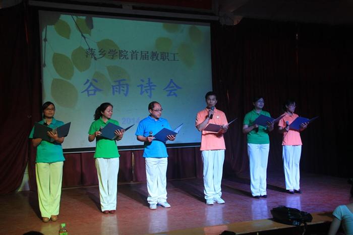 4月22日,由校工会、党委宣传统战部、学工处、团委主办,中文系承办的萍乡学院首届“谷雨诗会”在跬步楼115室举行。全校共有16支工会小组代表队参赛。校长刘明初,党委委员、工会主席彭检明出席诗会并颁奖。