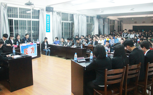 本次共举办了两场辩论赛,第一场是由计算机系和体育系就“助人为乐是出于个人意志还是是迫于社会道德”展开的辩论;第二场则是由机电系与材化系围绕“创建文明校园学生自律重要还是学校管理重要”进行的角逐。
