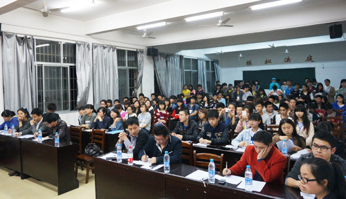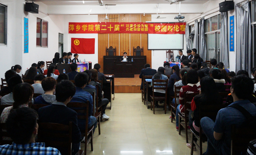 青春鼎力中国梦,唇枪舌战展雄风。4月8日晚,由校团委、思政部主办,校社联承办的第二十届校园辩论赛在英华楼模拟法庭拉开帷幕,本届辩论赛的主题是“以龚全珍为镜,共建和谐校园”。出席本次辩论赛的评委有:校团委书记刘德平、校团委副书记谢伟萍、数学系党总支副书记汤中友、教科系团总支书记赖榕、中文系团总支书记黄如光、经管系团总支书记李自连、校团委学生副书记李舸、校青协会长金煜哲。校社联以及参赛系的部分学生代表共计三百余人观看了此次比赛。