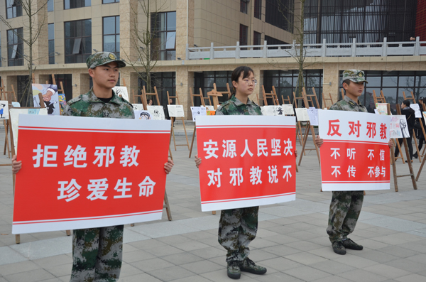 活动现场,我校师生从多角度,全方位为群众讲解邪教的危害,引导广大市民远离邪教,自觉抵制邪教,树立正确的人生观、价值观。在此次反邪教宣传周活动中,共展出反邪教宣传画报和板报100余块,发放反邪教宣传手册资料800余份。