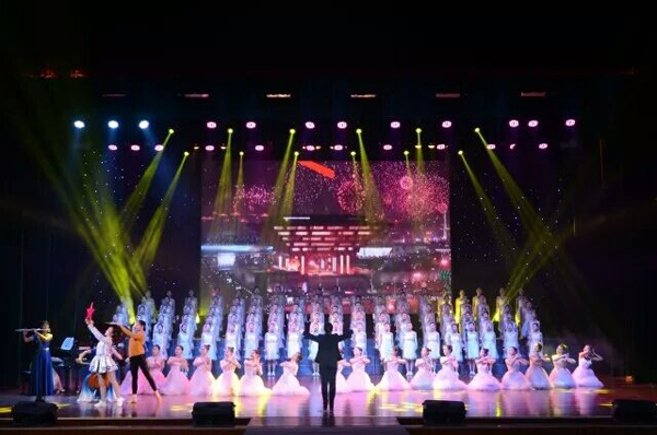 舞蹈串烧《炫动舞步》用跳动着的音符彰显着青春的舞步,散发着别样的光彩。男女生重唱《为祖国干杯》,太阳和月亮共举酒杯,也为祖国干杯。小品《我们的心声》讲述了拍摄霸王别姬的搞笑剧组生活,不忘初心,用角色表达心声,用文艺成就梦想。校党委副书记蔡宝琦带来了朗诵《由冬到春》,集古今中外众多诗歌于一体,讲述了从冬季到春季的更迭变换,令人回味无穷。最后由校艺术团和艺术学院带来的歌舞《天耀中华》结束了整场晚会。