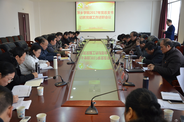 为全面学习宣传党的十九大精神,深入贯彻落实习近平新时代中国特色社会主义思想,按照新时代党的建设总要求,进一步推动全面从严治党向基层延伸,根据上级有关通知精神和学校党委部署,1月9日上午,2017年度党总支书记抓党建工作述职评议考核会在至善楼第一会议室召开。党委书记陈金印出席并讲话。党委副书记蔡宝琦主持会议。在家校领导,党建工作领导小组成员单位负责人、各党总支书记参加会议。