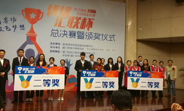 12月22日至24日,由教育部学校规划建设发展中心主办的2017年全国应用型人才技能大赛——“优优汇联杯”全国电子商务实战总决赛在福建省厦门市圆满落幕。商学院电子商务专业 “同学同心”战队一路过关斩将,获得全国二等奖,朱艳清老师荣获“优秀指导教师称号”。