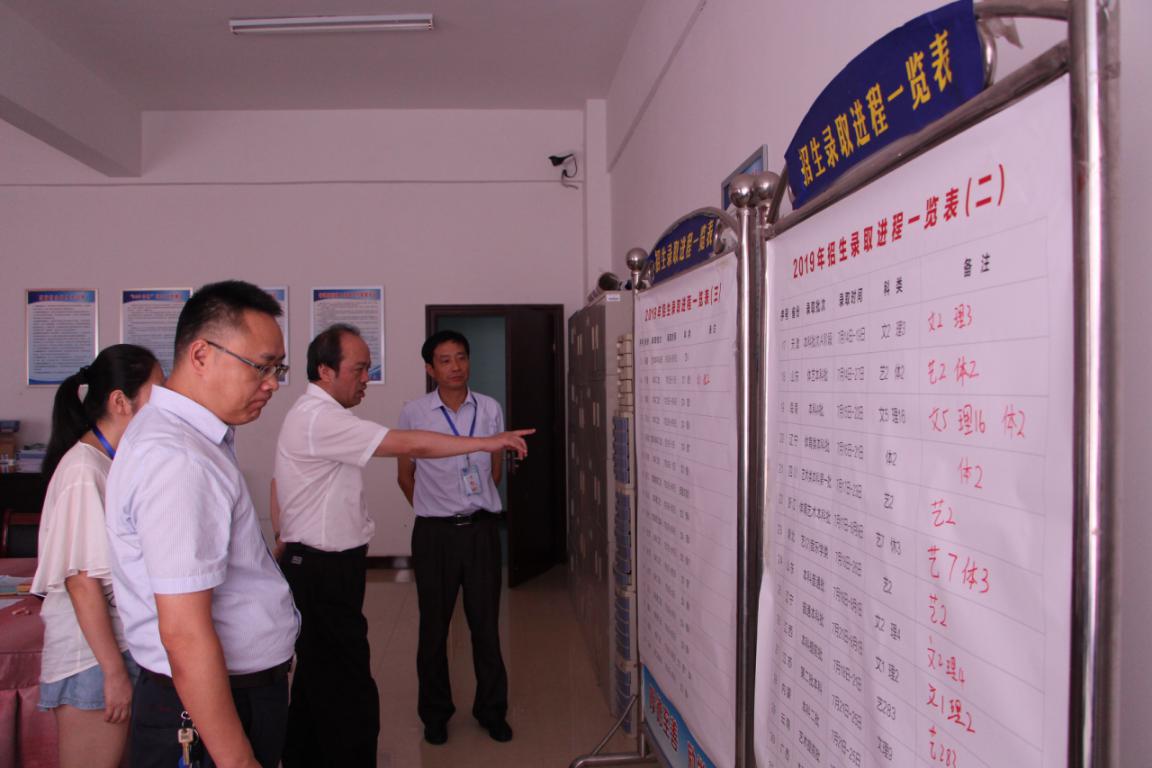陈金印和史焕平听取了招就处处长文发佑对学校2019年远程网络录取工作汇报,详细了解了录取工作政策和生源情况,查看了录取进展。随后陈书记和史校长与工作人员进行交流,查看了录取机房、录取通知书打印室,并仔细察看了录取机房电脑操作过程,询问了解了录取程序,慰问和鼓励了在酷暑下坚持工作的全体录取工作人员。
