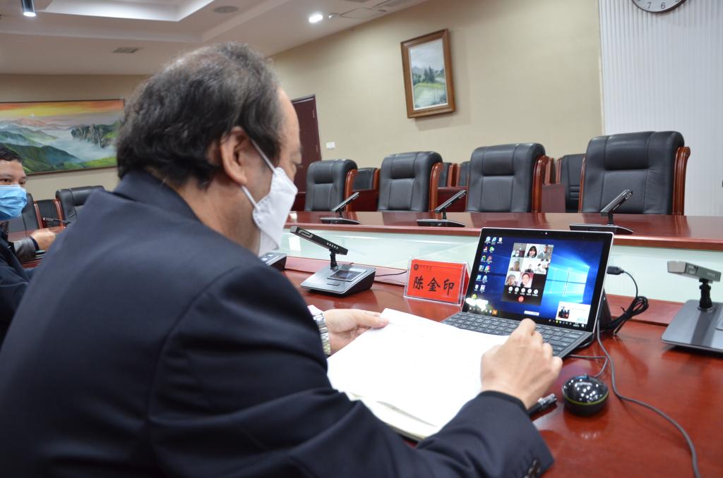 连线最后,陈金印表示,“学校永远是你们坚强的后盾,你们一定要坚定信心,做好防护,保护好自己和家人的健康,安排好自己的学习和工作。相信在大家的共同努力下,我们必将渡过阴霾,在春暖花开的校园里相逢!我们热切期盼你们平安归来!”