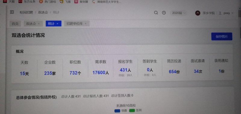 我校2020届毕业生线上招聘会于3月16日正式拉开“云招聘”大幕,历时15天。本次双选会由江西省教育厅、萍乡市劳动就业服务管理局、我校联合举办,校聘云提供平台技术支持。来自广东、浙江、上海、北京、江西、本市等235家优质企业,涉及电子技术、建筑房地产、教育培训、互联网电商、计算机软件、IT服务、金融证券等行业领域,共为毕业生提供了17600个就业岗位。