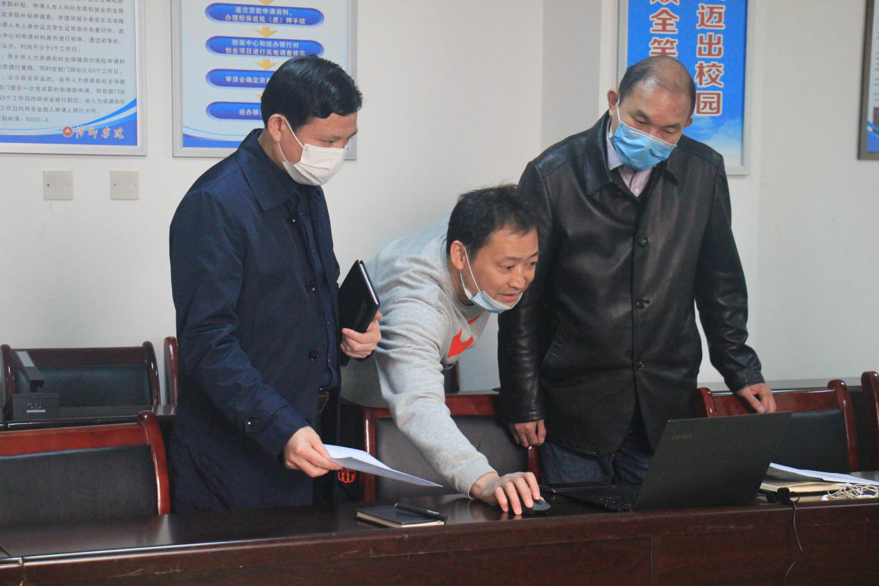 会后,史焕平和陈永国赶到招就处“2020届毕业生春季线上招聘会”现场,和毕业生现场连线,详细了解了毕业生线上投递简历等情况。