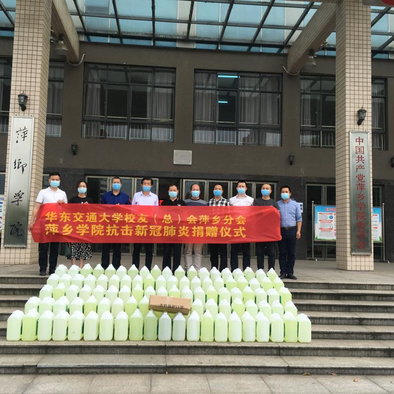 4月30日,正值全省高校复学之际,得知我校防疫物资还有缺口,华东交通大学萍乡校友会向我校捐赠84消毒液1吨,一次性口罩500个,助力我校春季开学准备工作。