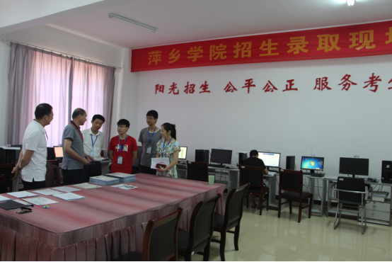 史焕平听取了招就处处长文发佑对学校2020年远程网络录取工作汇报,详细了解了录取工作进程和生源情况,查看了专业录取情况。他指出今后高考改革更要注重以专业为导向,打造精品专业、特色专业来吸引考生报考。随后史校长与工作人员进行交流,查看了录取机房、录取通知书打印室,询问了录取程序,慰问和鼓励了在酷暑下坚持工作的全体录取工作人员。