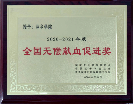 近日,国家卫健委、中国红十字会总会与中央军委后勤保障部卫生局联合下发了《关于表彰2020-2021年度全国无偿献血表彰奖励获奖者的决定》,对2020-2021年度在无偿献血工作中作出突出贡献的集体和个人进行了表彰,该项荣誉每两年表彰一次。我校继2015年和2018年后再次荣获“全国无偿献血促进奖”。