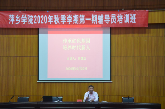 10月30日下午,学校秋季学期第一期辅导员培训班(第一场)在至善楼学术报告厅举行,特邀党委委员、党委宣传部长陈永国,党委学生工作部部长(学生工作处处长)肖国正进行主讲,参加培训的有各二级学院副书记、学工科科长及一线专职辅导员。