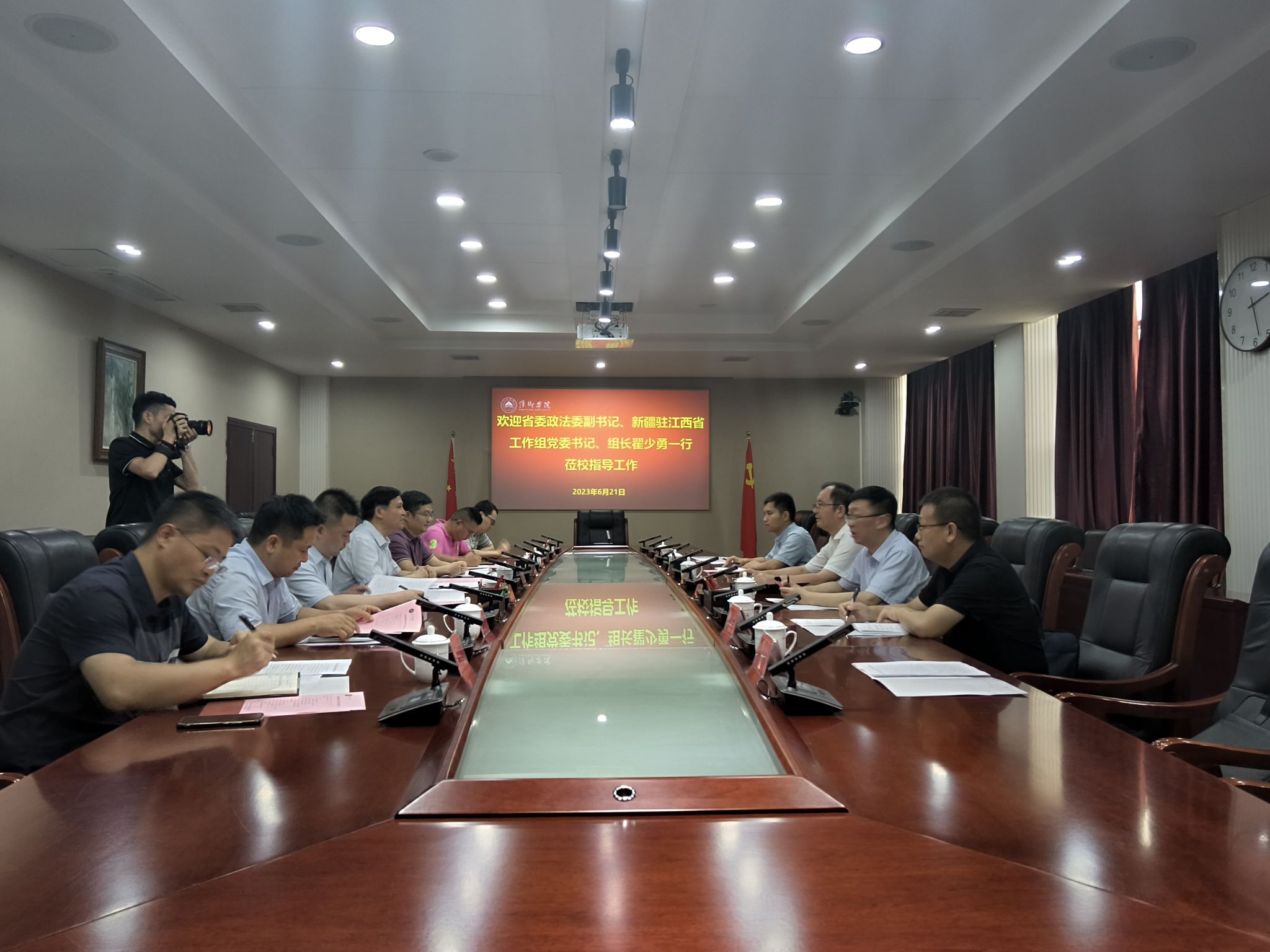 6月21日下午,江西省委政法委副书记、新疆驻江西省工作组党委书记、组长翟少勇一行来校调研,党委委员、副校长、宣传部长陈永国,党委委员、统战部长王林清,学工处、校团委、保卫处、招生就业处相关负责人参加。
