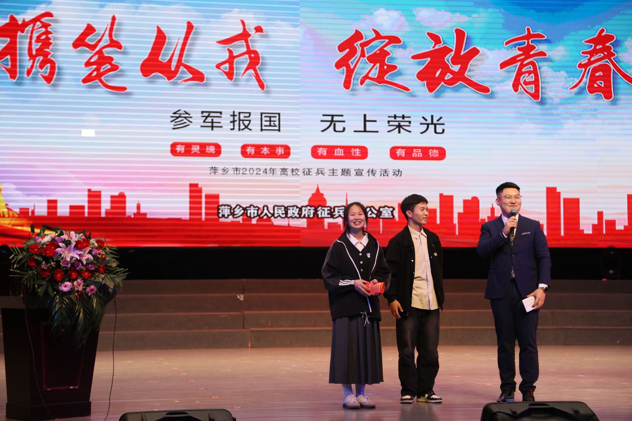 活动期间,萍乡市征兵办在学校广场同步组织征兵政策咨询及现场应征报名等配套活动。相关工作人员从应征报名、部队发展、退役优待等方面对征兵政策进行了解读,鼓励同学们投身我国的国防事业建设。