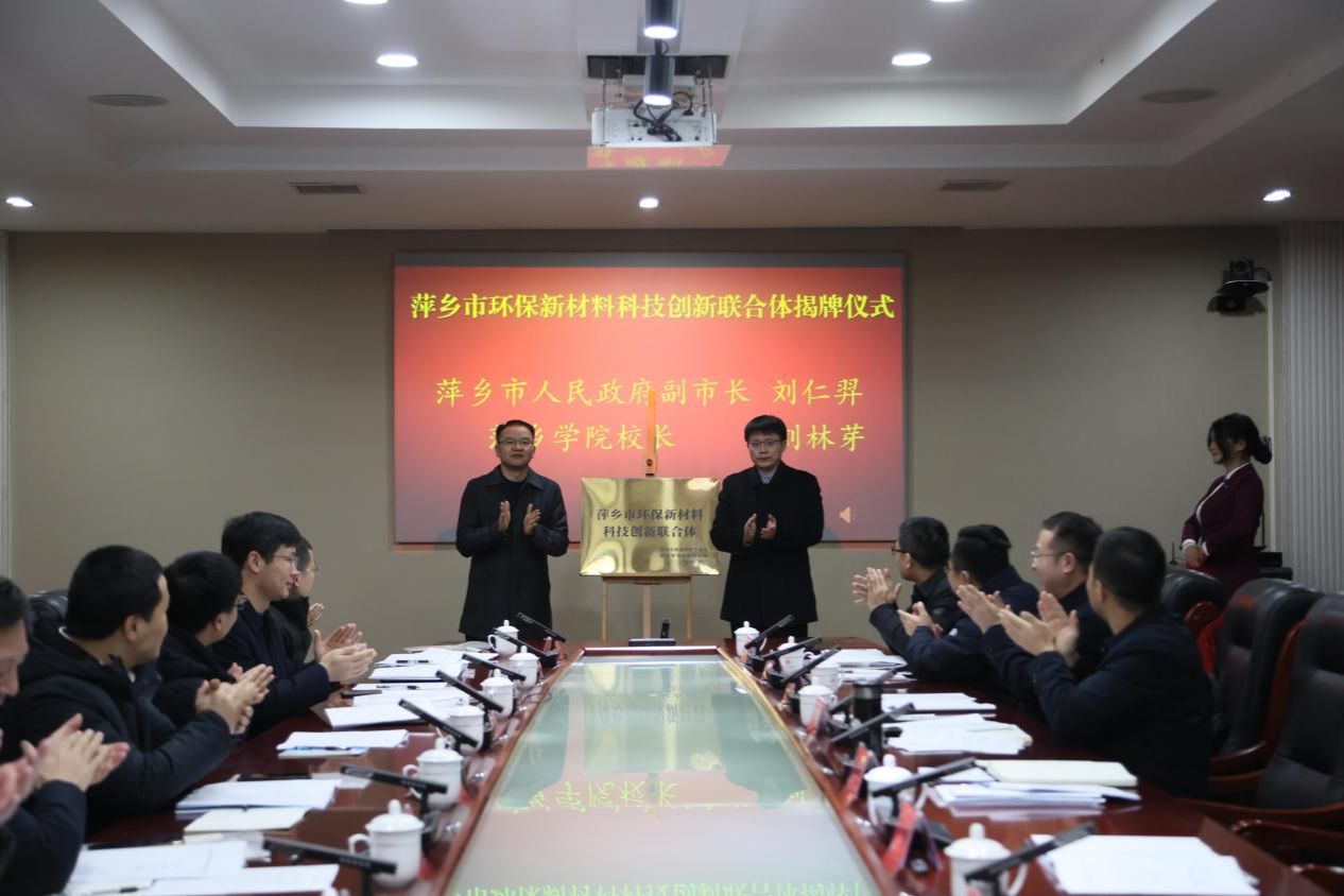 会上,刘仁羿与刘林芽为萍乡市环保新材料科技创新联合体揭牌,18家成员企业共同见证。