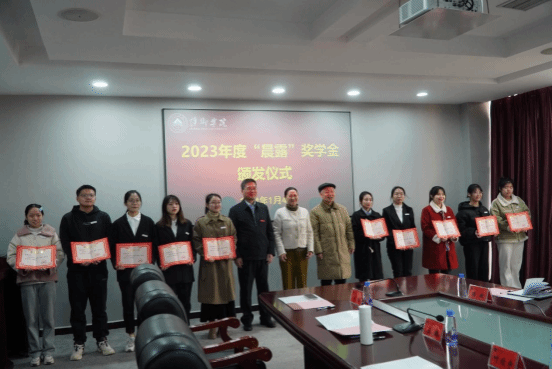 1月4日,我校在至善楼第二会议室举行2023年度“晨露奖学金”颁发仪式。市政府党组成员、副市长朱艳珍,原市人大主任尹兆书,校党委书记邱晓辉,校党委委员、副校长刘培圣,市政府副秘书长汤永胜出席仪式。学工处、计财处负责人以及获奖学生参加仪式,仪式由刘培圣主持。