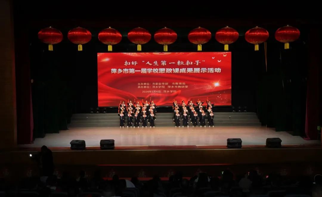 1月4日,我校在音乐厅举行以“扣好‘人生第一粒扣子’”为主题的萍乡市第一届学校思政课成果展示活动。本次活动由市委宣传部、市教育局主办,我校与市教研室承办,旨在进一步推进全市大中小学思政课一体化建设、教师能力提升和思政实践育人实效。市委常委、宣传部部长叶舟出席活动。