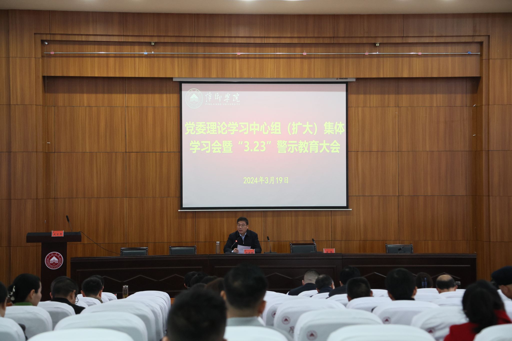 3月19日,我校在至善楼学术报告厅召开党委理论学习中心组(扩大)集体学习会暨“3.23”警示教育大会,深入学习贯彻习近平总书记关于全面从严治党的重要论述,认真学习贯彻新修订的《中国共产党纪律处分条例》。全体在家校领导出席学习会。全校副处级以上领导干部参加学习会。学习会由校党委书记邱晓辉主持。