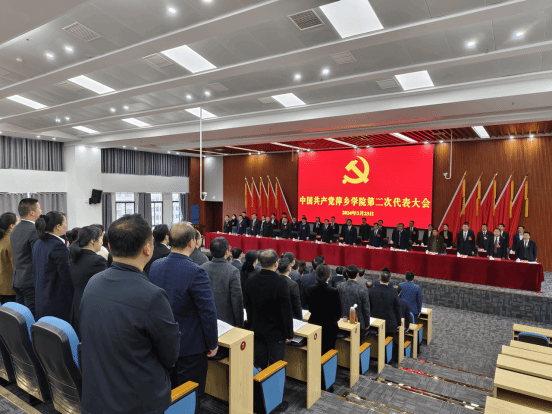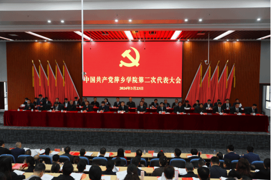 会场内气氛庄严热烈。主席台上方悬挂着“中国共产党萍乡学院第二次代表大会”的会标,正中是镰刀和锤头组成的党徽,10面鲜艳的红旗分列两侧,会场后面悬挂着“坚持守正创新 矢志接续奋斗 奋力谱写建设特色鲜明、优势明显的应用型本科高校新篇章!”的大幅标语,鼓舞人心,催人奋进。