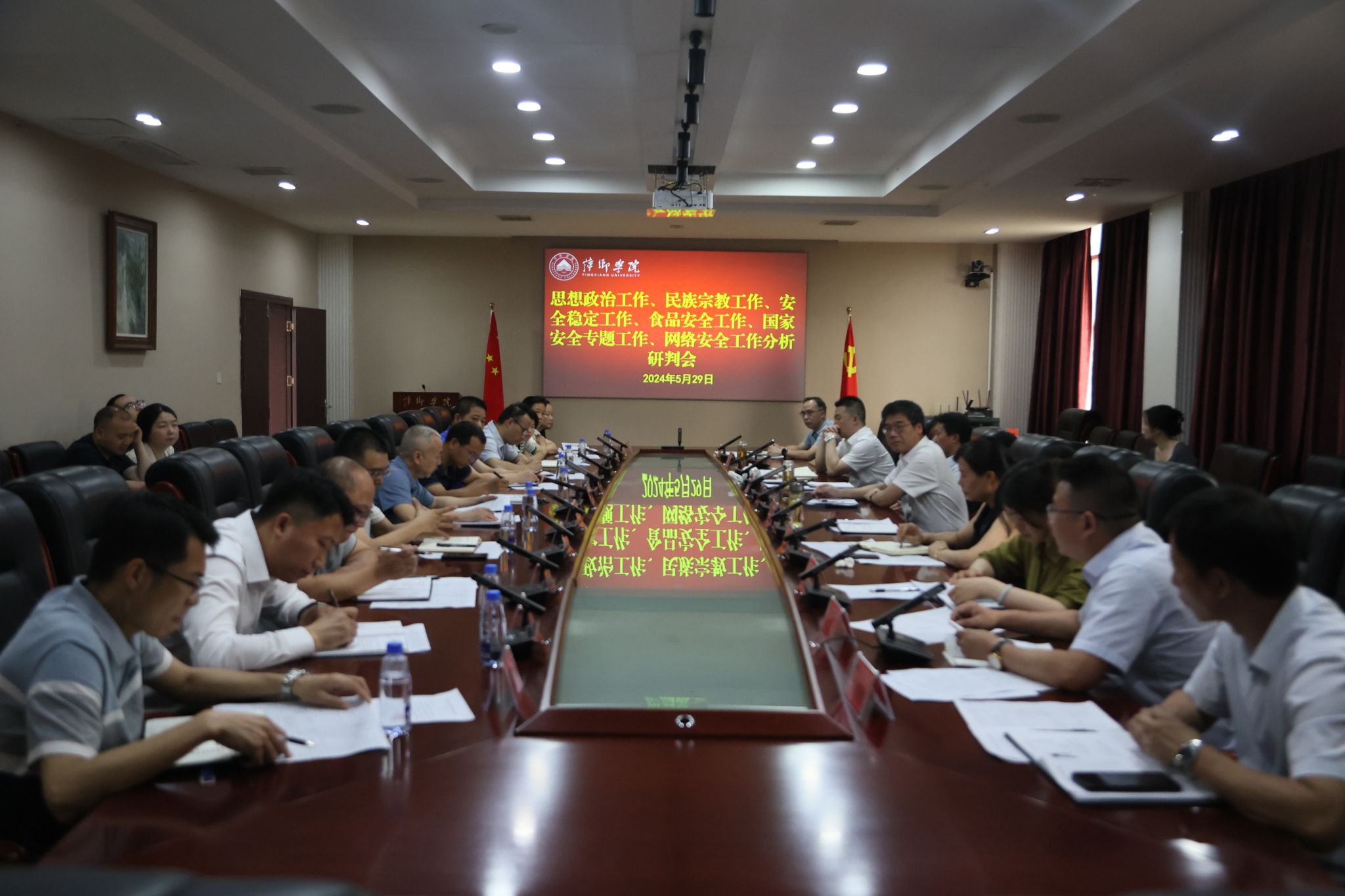 5月29日,我校在至善楼第一会议室召开思想政治、民族宗教、意识形态、安全稳定等工作分析研判会。校领导邱晓辉、王林清、曾敏、贺晓梅出席会议。人事处、学工处、保卫处、后勤处等相关部门负责人以及二级学院党委书记参加会议。会议由校党委书记邱晓辉主持。
