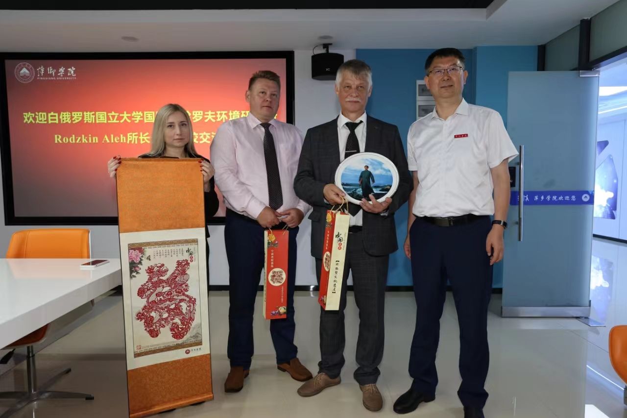 吴代赦代表学校对白俄罗斯国立大学国际萨哈罗夫环境研究所所长一行表示欢迎,并简要介绍学校情况。Rodzkin Aleh先生介绍白俄罗斯国立大学及研究所情况和办学特色,以及学校留学生情况。