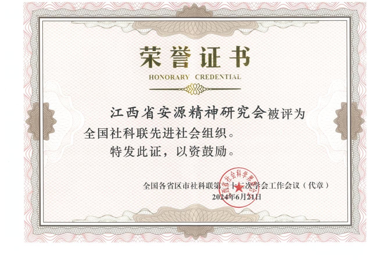 近日,全国社科联第二十二次学会工作会议发布了《关于表彰全国各省区市社科联先进社会组织和优秀社会组织工作者的决定》,对全国151个先进社会组织、149名优秀社会组织工作者进行表彰。挂靠在我校的江西省安源精神研究会荣获全国社科联先进社会组织称号。