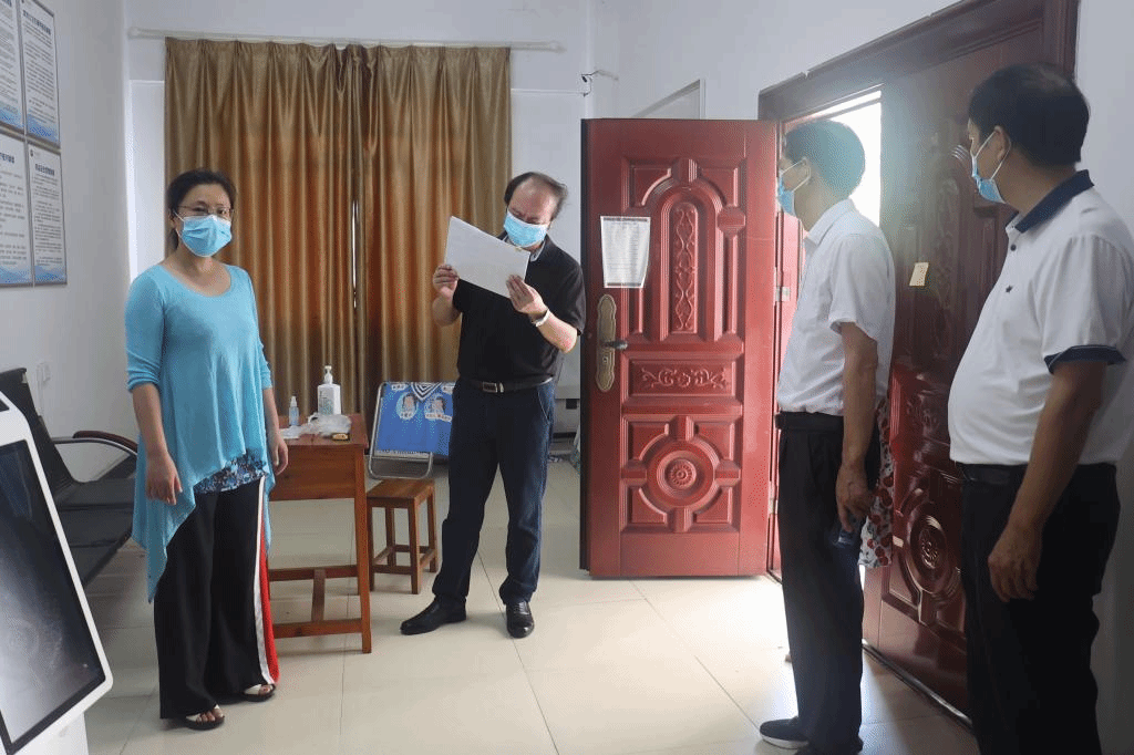 陈金印一行仔细查看了学校门卫、医务室、教学楼、学生宿舍等地,认真听取相关负责人的汇报,详细了解文明创建工作和防疫物资储备、楼栋维修完工等开学准备工作情况。