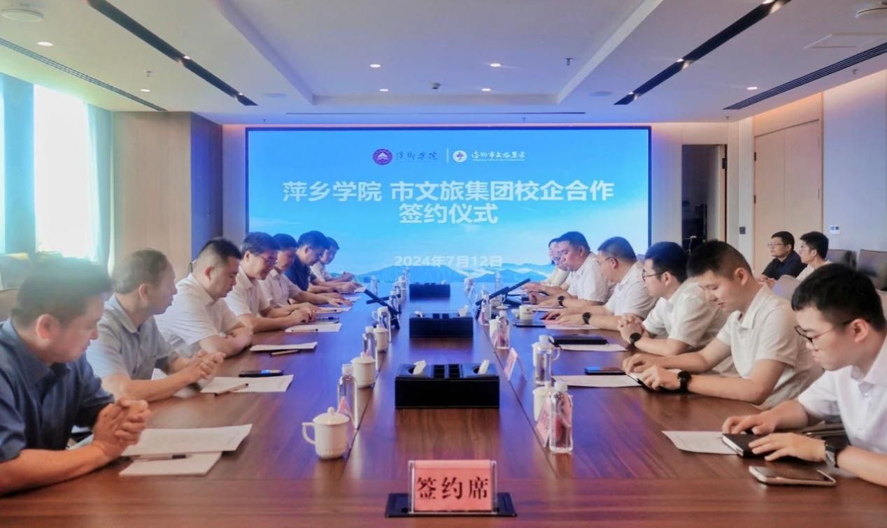 7月12日,我校与萍乡市文旅集团校企合作签约仪式在萍乡市投发大厦举行。校党委书记邱晓辉,校党委委员、副校长陈永国,萍乡市文旅集团党委书记、董事长易勇平,萍乡市文旅集团党委副书记、总经理王绍林,我校党政办、招生就业处、相关二级学院负责人及萍乡市文旅集团相关工作人员参加仪式。